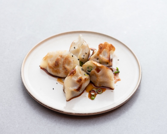 Pan-fried pork & chive dumplings, drizzled with our teriyaki sauce then sprinkled with roasted sesame seeds and spring onion.